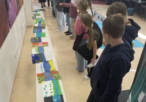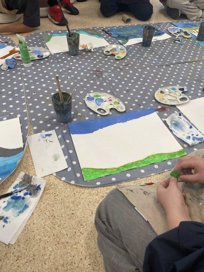 Vaikai piešė savo upę, vėliau jungė jas į vieną bendrą kūrinį, eksperimentavo su įvairiomis priemonėmis – augalais, antspaudais, faktūromis, o galiausiai vieni kitiems linkėjo „ramybės ir pilnatvės“, „gerų draugų“, „kad jų upės visada tekėtų“...
