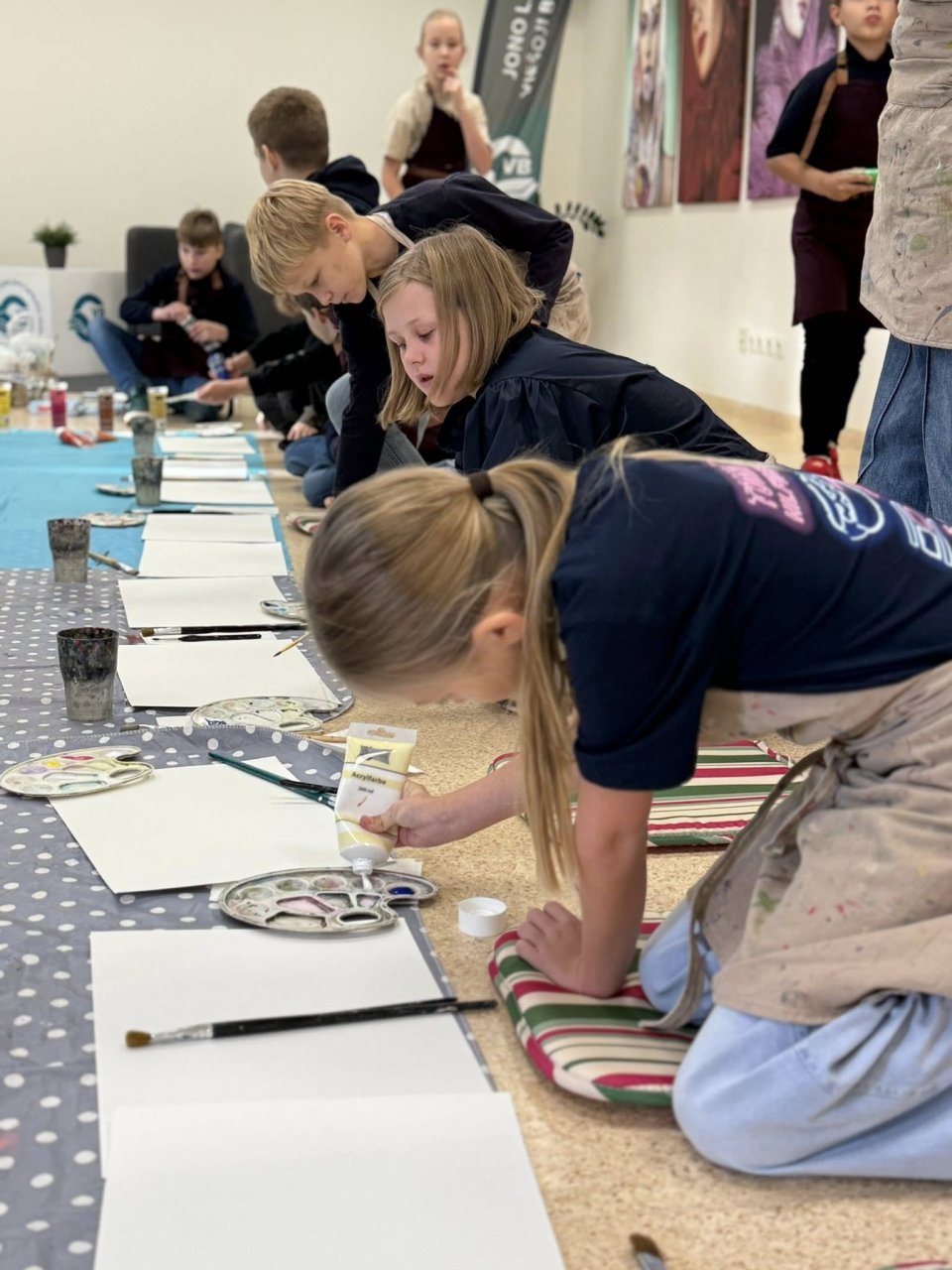 Mažieji kūrėjai ne tik susikaupę piešė, atsipalaidavo, bet ir mokėsi išgirsti save bei šalia esantį draugą.