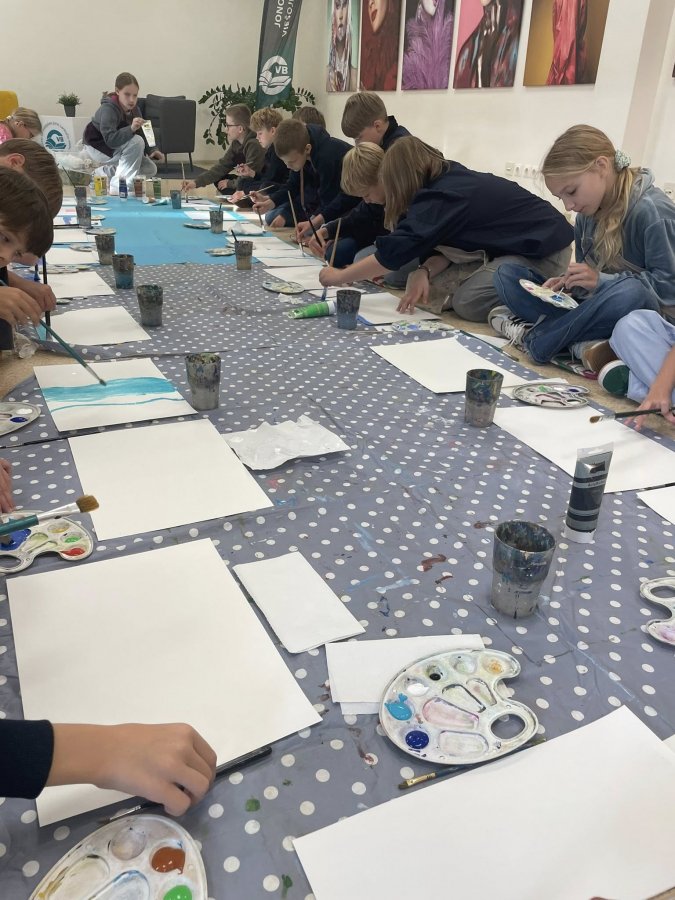 Dailės terapijos metu dalyviai leidosi į raminančią kūrybos kelionę: spalvos tapo jausmų atspindžiais, o potėpiai – savotišku pokalbiu su savimi. Tai buvo ramybės oazė, kurioje nereikėjo skubėti ar ieškoti „teisingo“ sprendimo – svarbiausia buvo pats procesas.