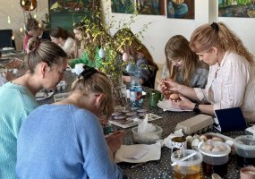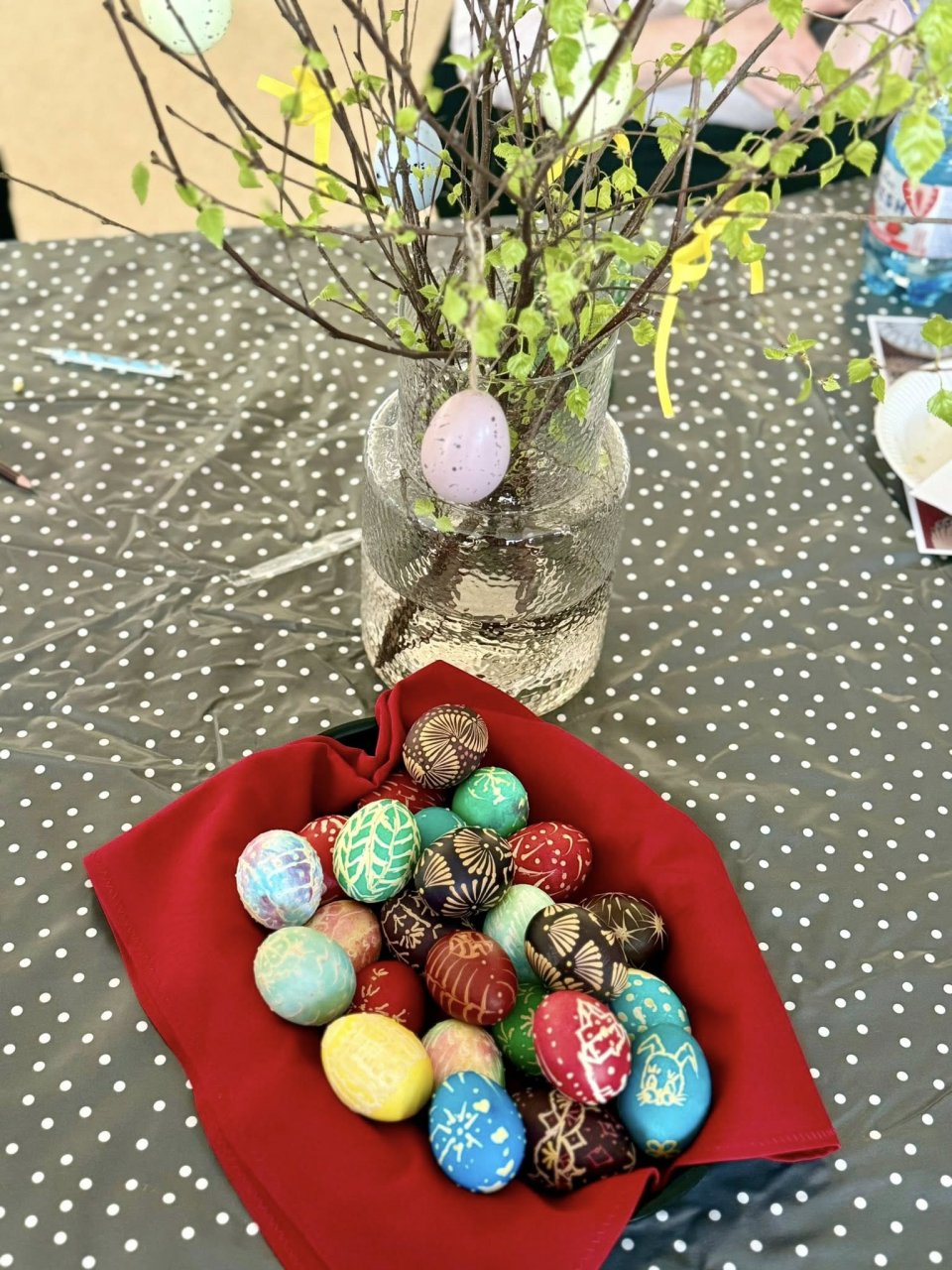 Čia vyko margučių marginimo edukacija, kurios metu dalyviai turėjo galimybę išbandyti tradicinį kiaušinių marginimo būdą – bičių vašku.