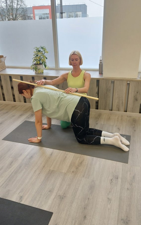 Projekto „Išgirsk save 2“ judesio–pilateso terapijos užsiėmimas su kineziterapeute Asta Lukauskiene kvietė sustoti, įkvėpti ir išgirsti save.