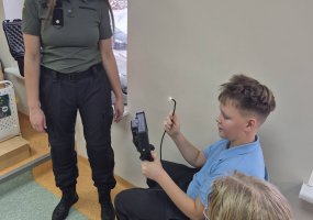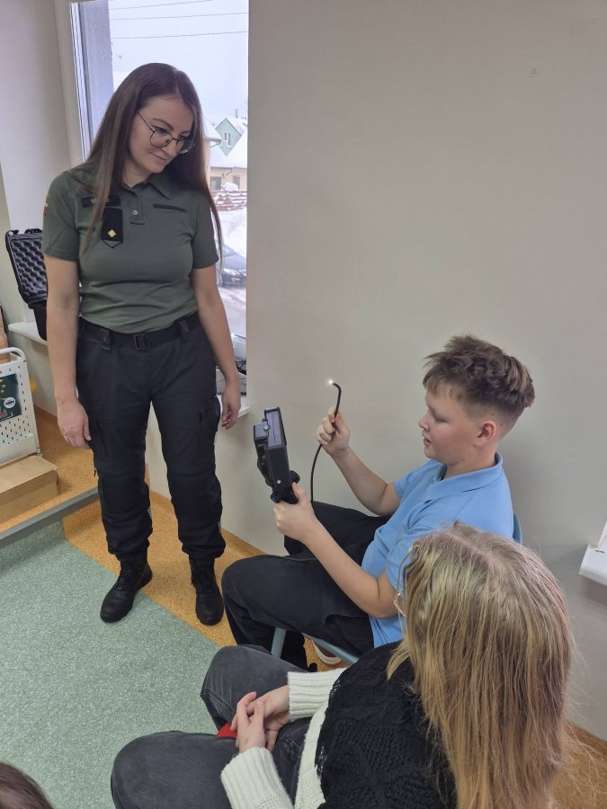 Taip pat mokiniai turėjo progą iš arčiau susipažinti su kai kuriais muitininkų darbo įrankiais ir sužinoti, kaip atrodo jų tarnyba iš vidaus.
