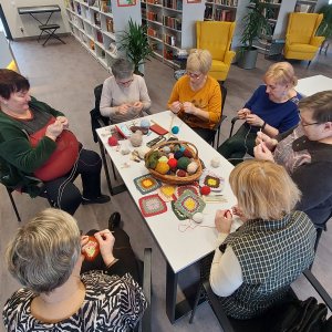 Mezgėjų ir skaitytojų knygų klubas „Mezginiai tarp eilučių“ bibliotekoje sujungia dvi aistras – mezgimą ir literatūrą. Klubo nariai vieną kartą per mėnesį susitinka, aptaria perskaitytas knygas, dalinasi įspūdžiais bei idėjomis, o tuo pačiu metu mezga ir kurią savo kūrinius.