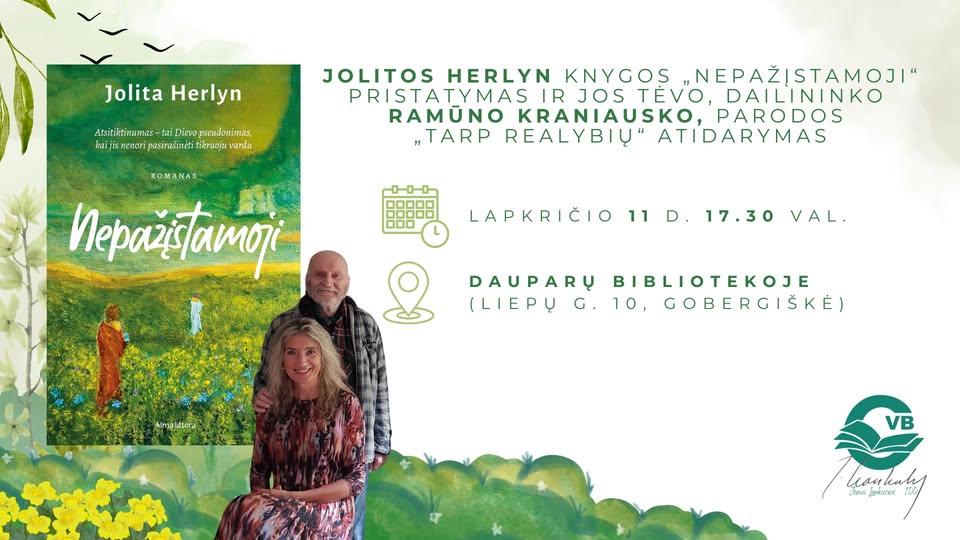 Kviečiame į rašytojos Jolitos Herlyn naujausios knygos „Nepažįstamoji“ ir jos tėvo, dailininko Ramūno Kraniausko, parodos „Tarp realybių“ pristatymą Dauparų bibliotekoje.