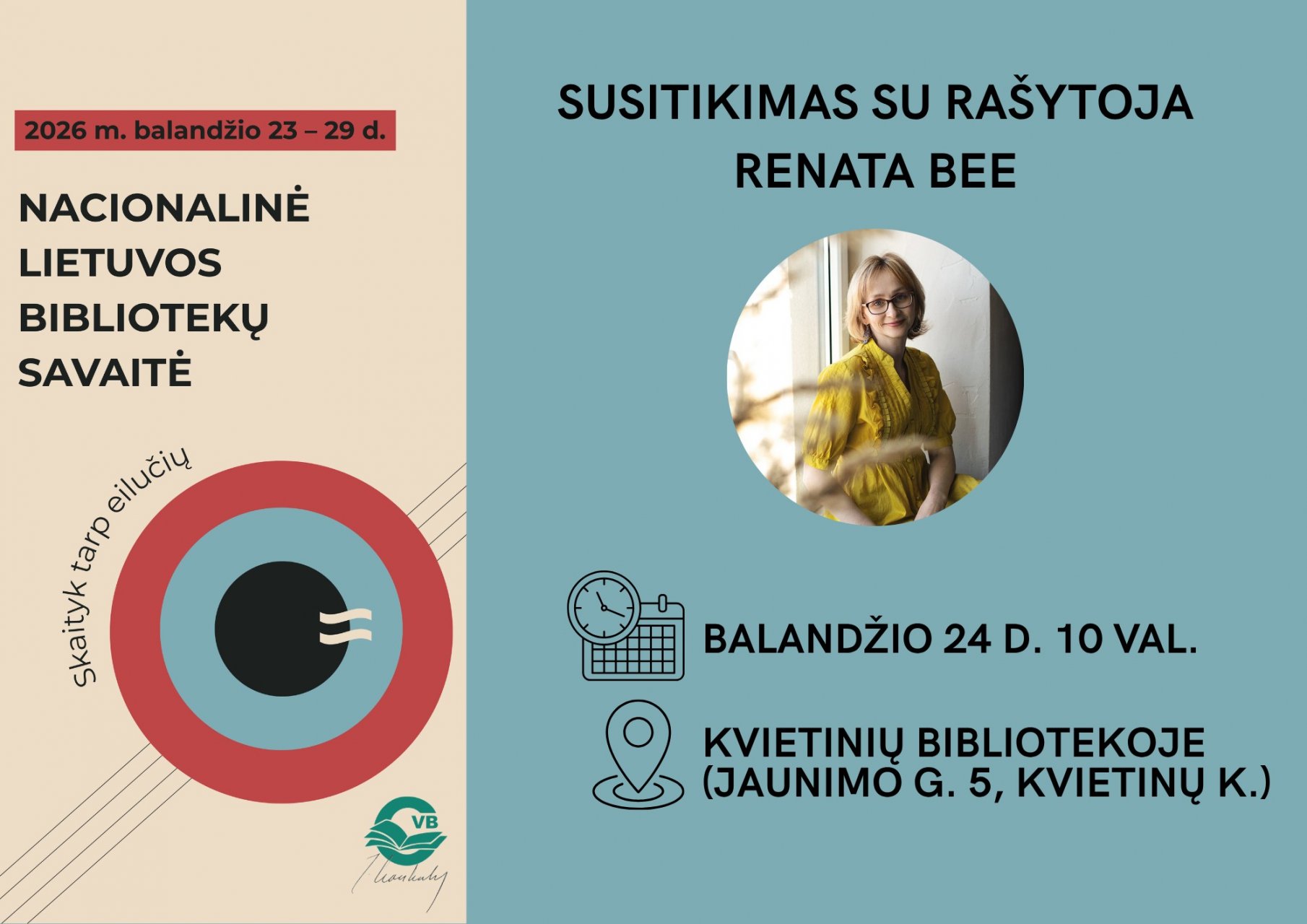 Balandžio 24 d. 10.00 val. kviečiame į susitikimą su vaikų rašytoja ir knygų iliustratore Renata Bee.