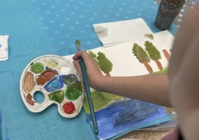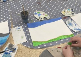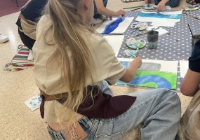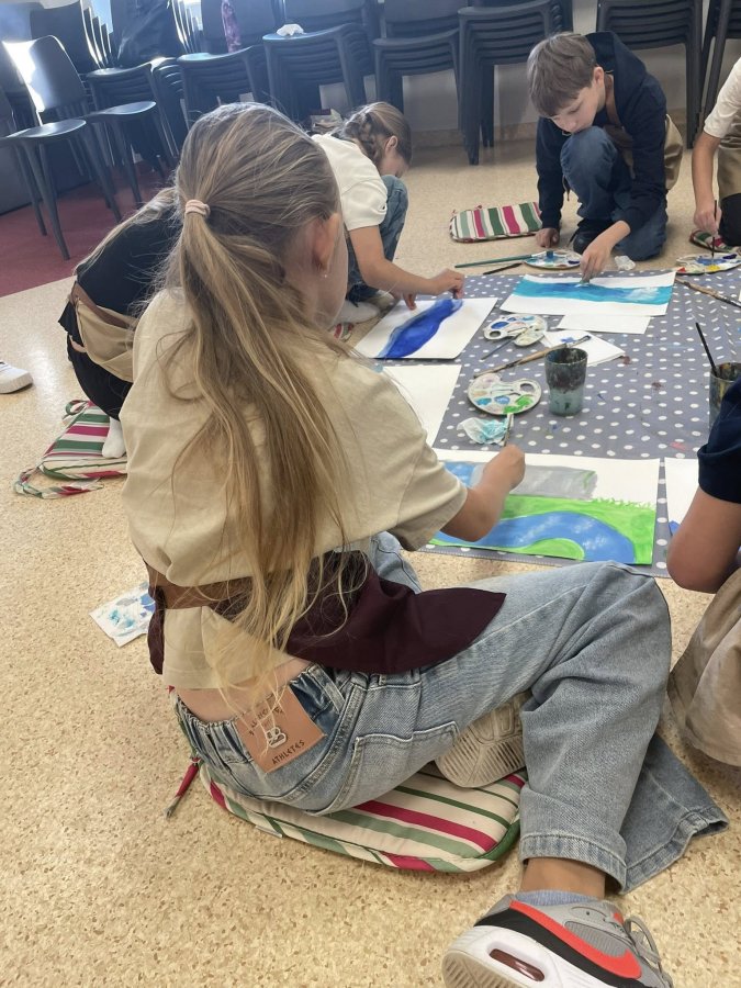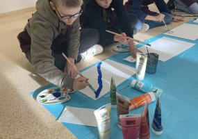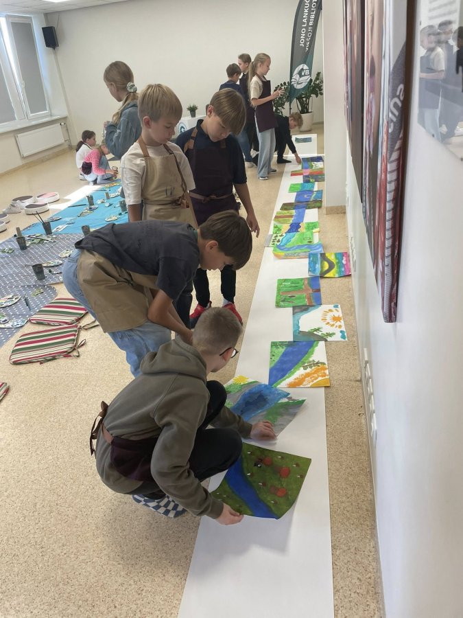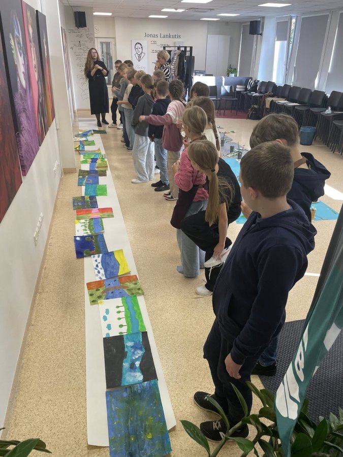 Vaikai piešė savo upę, vėliau jungė jas į vieną bendrą kūrinį, eksperimentavo su įvairiomis priemonėmis – augalais, antspaudais, faktūromis, o galiausiai vieni kitiems linkėjo „ramybės ir pilnatvės“, „gerų draugų“, „kad jų upės visada tekėtų“...