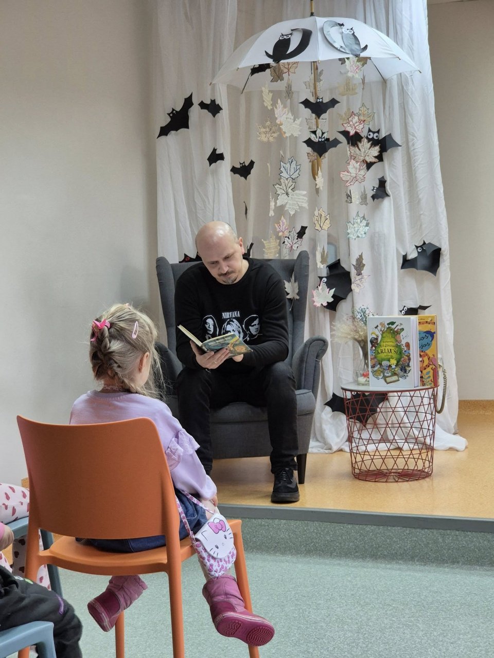 Šiandien bibliotekoje vyko susitikimas su rašytoju Virgiu Šidlausku, kuris ne tik kuria puikias istorijas, groja smagias melodijas ir dainuoja linksmas daineles, bet ir skaito SKAITO kaip TĖTIS, dalyvaujantis projekte „Tėčiai skaito vaikams“.