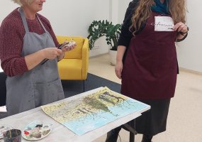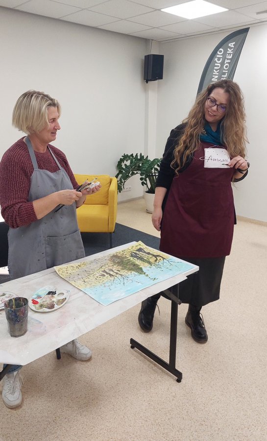 Dailės terapijos metu dalyviai leidosi į raminančią kūrybos kelionę: spalvos tapo jausmų atspindžiais, o potėpiai – savotišku pokalbiu su savimi. Tai buvo ramybės oazė, kurioje nereikėjo skubėti ar ieškoti „teisingo“ sprendimo – svarbiausia buvo pats procesas.