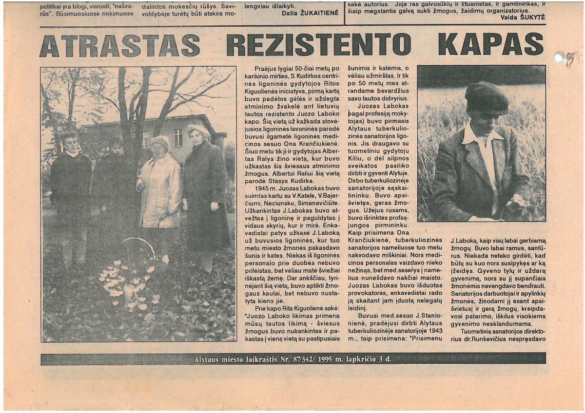 Lietuvių kalbos draugijai kreipusis į Lietuvos gyventojų genocido ir rezistencijos tyrimų centrą, buvo sustabdyti darbai toje vietoje, kur galimai tebėra Juozo Laboko palaikai. Ateinančiais metais, tikėtina, palaikai bus surasti ir perlaidoti arba bus galima nuspręsti, kaip jo ir kitų rezistentų palaikų amžino poilsio vietą deramai pagerbti.