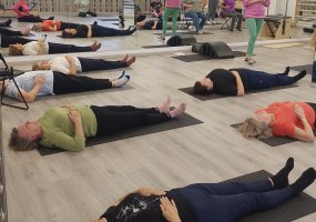 Projekto „Išgirsk save 2“ judesio–pilateso terapijos užsiėmimas su kineziterapeute Asta Lukauskiene kvietė sustoti, įkvėpti ir išgirsti save.