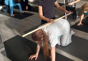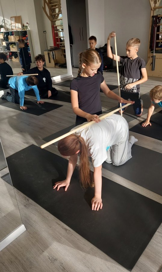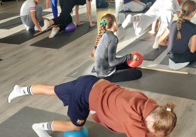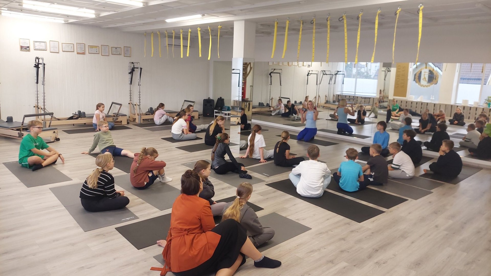 Užsiėmimo metu mokiniai mankštinosi, sportavo, išbandė net prieš 100 metų Joseph Pilates sukurtus treniruoklius – kėdę ir reformerį – stiprino kūną, lavino koordinaciją, dėmesio koncentraciją, ištvermę.