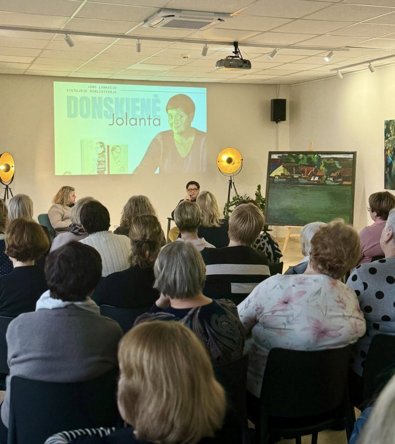 Kovo 19 d. vakarą bibliotekoje vyko jaukus, šiltas ir prasmingas susitikimas su Jolanta Donskiene, kuri pristatė dvi knygas – „Donskis yra Donskis“ ir „Drąsa ir orumas šiandien“.