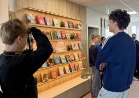 Vizito metu moksleiviai turėjo progą iš arčiau susipažinti su bibliotekos veikla: apžiūrėjo skirtingus skyrius, sužinojo, kokios paslaugos teikiamos lankytojams, pabendravo su čia dirbančiais darbuotojais. Kalbėjomės apie tai, kaip keičiasi biblioteka šiandien ir kuo ji gali būti įdomi jaunam žmogui.