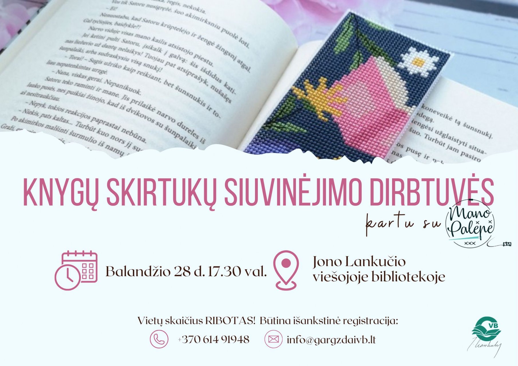 Knygų skirtukų siuvinėjimo dirbtuvės