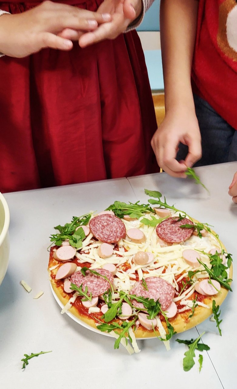 O tuomet kartu su konkurso laimėtojais – Gargždų „Minijos“ progimnazijos 4A klasės mokiniais – kepėme KALĖDINĘ PICĄ!