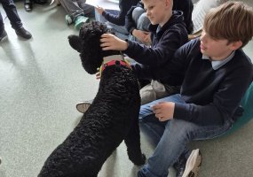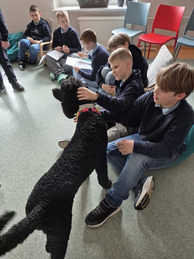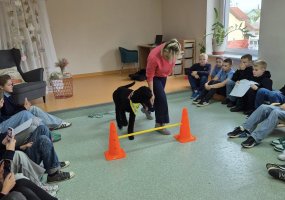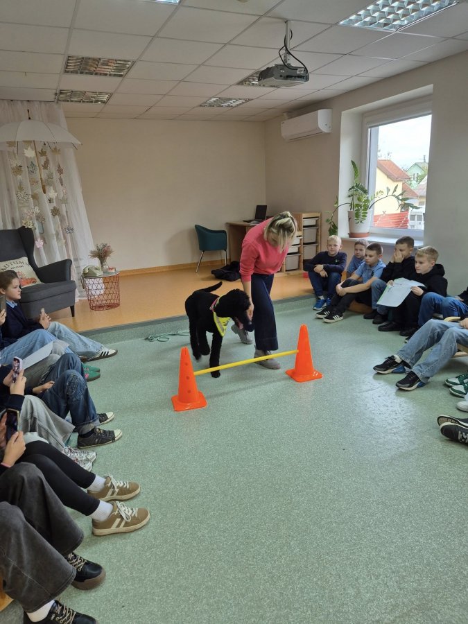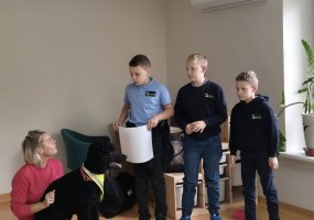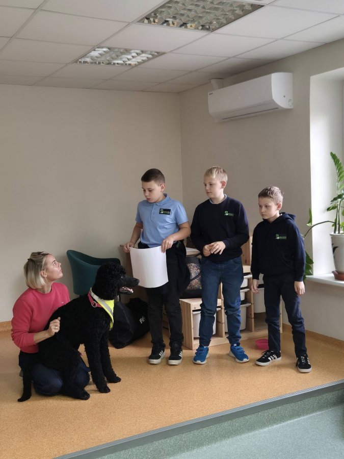 Vytautė yra psichologė, geštalto psichoterapijos praktikė ir kaniterapeutė, turinti du nuostabius terapinius šunis - Mėtą ir Džo. Susitikimo metu vaikai diskutavo, ką reikia daryti, norint auginti šunį, stebėjo, kokius triukus moka atlikti Džo ir net padėjo jam mokintis naują triuką.