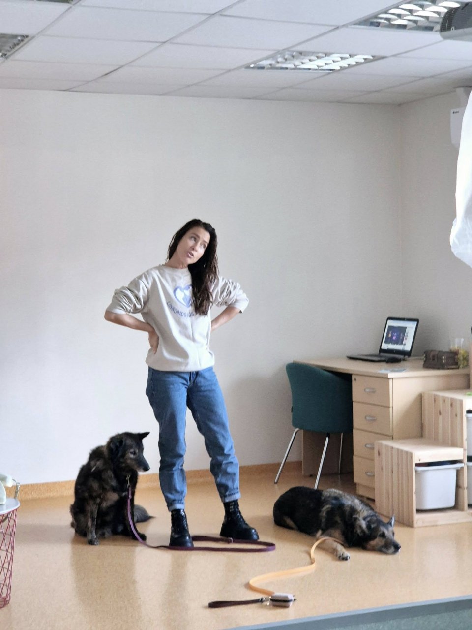 Šiandien pas mus svečiavosi Simona Šakinytė iš Klaipėdos gyvūnų prieglaudos „Linksmosios pėdutės“. Su savimi ji atsivežė du keturkojus draugus, kuriems pati suteikė naujus namus.